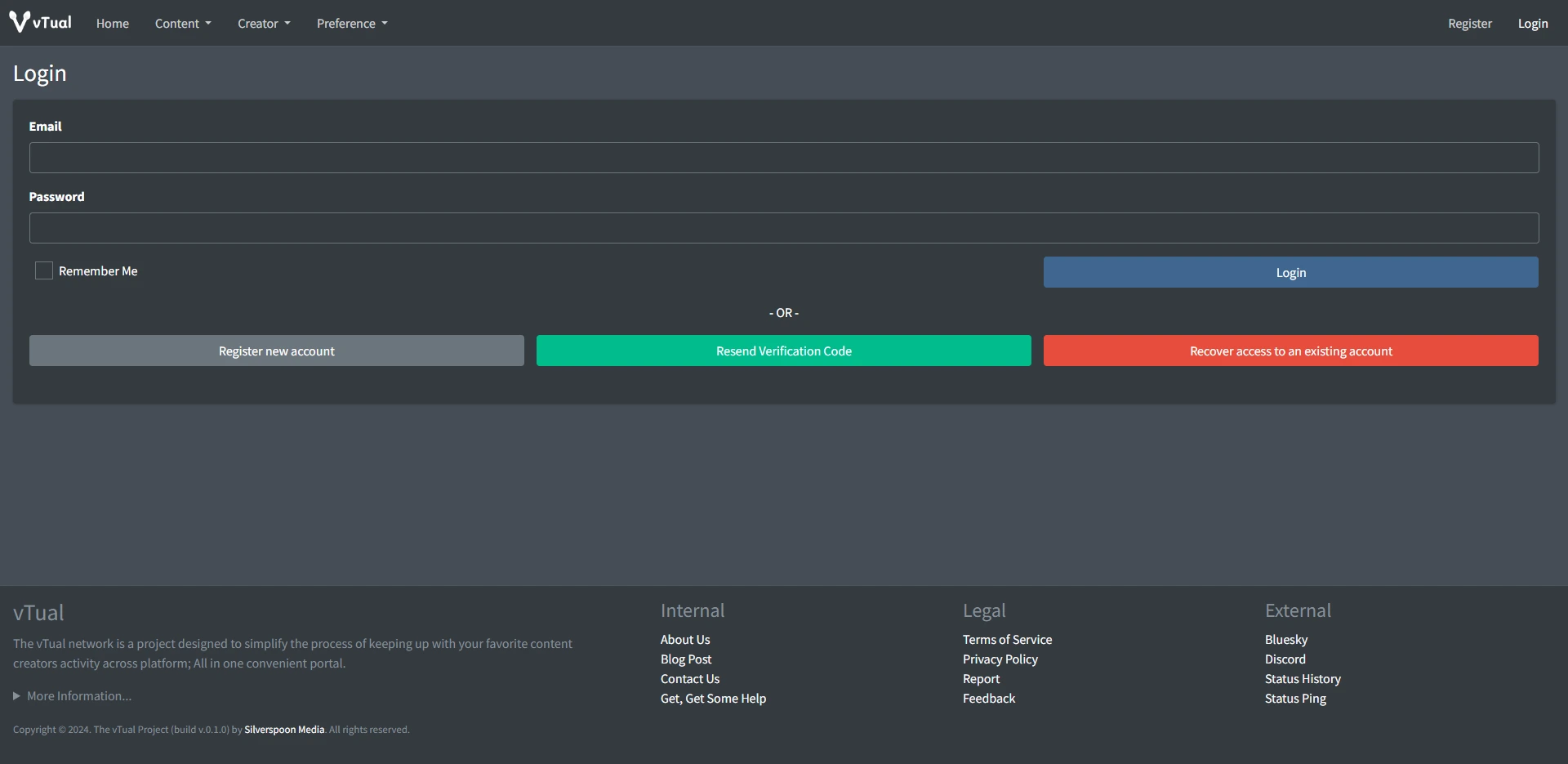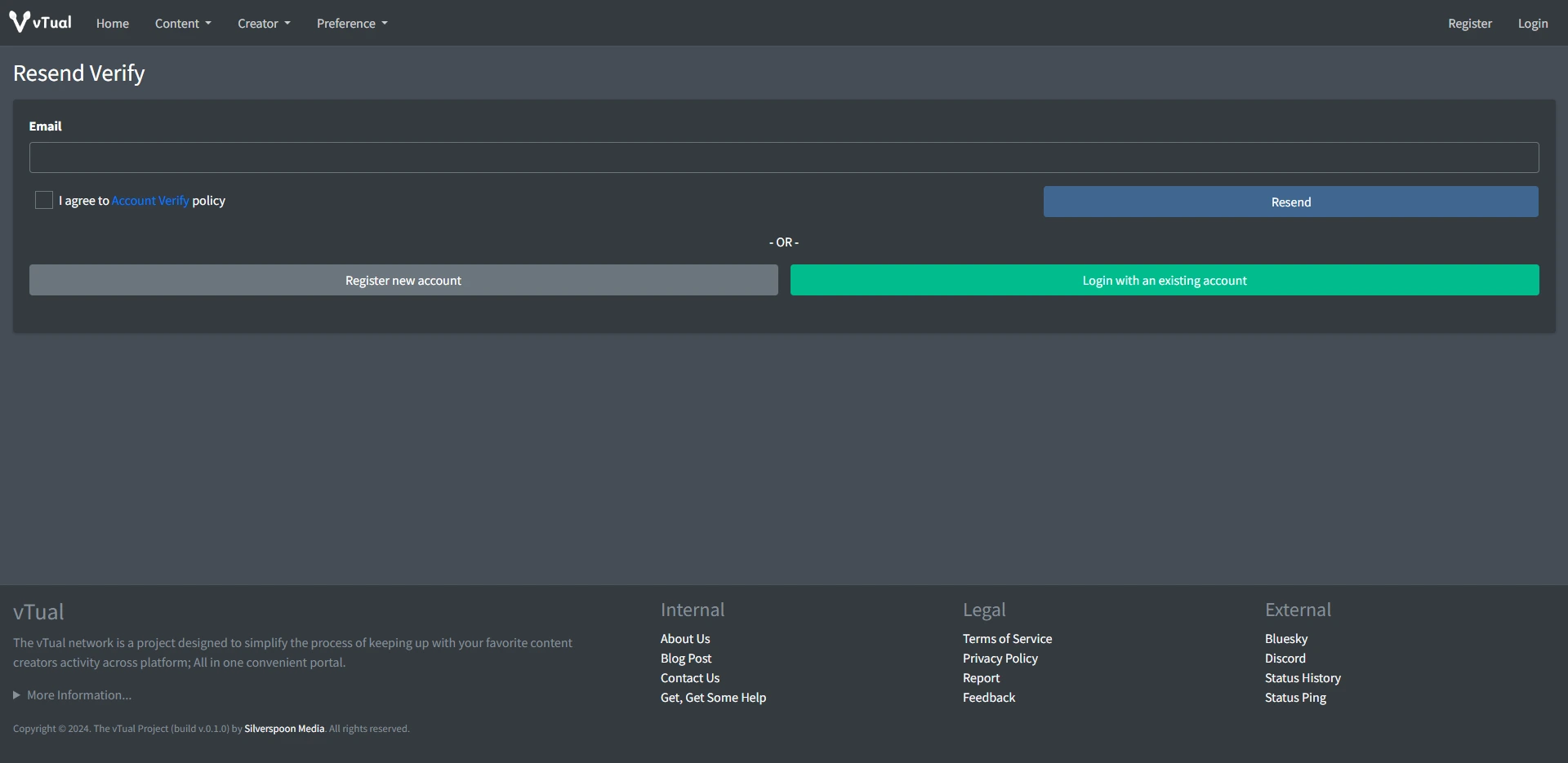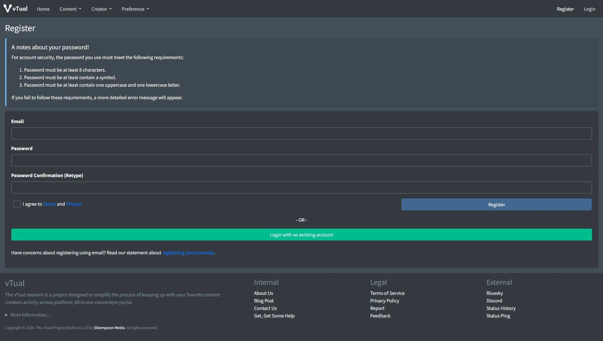 To start using the vTual service, both viewers and content creators must register first.