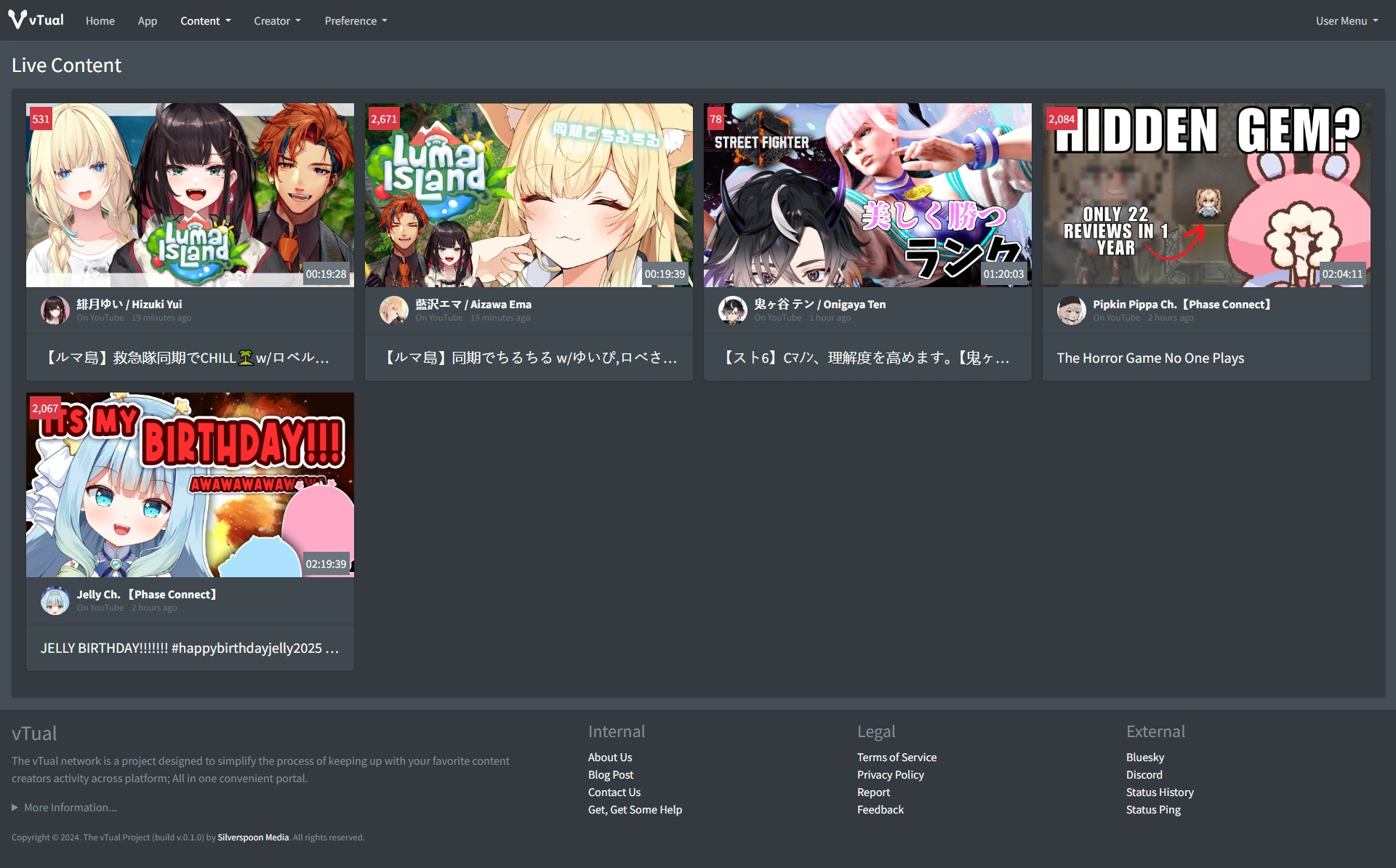 Please note that the term of "content" here refers to the data and information that vTual obtains from related services, such as Twitch or YouTube. This "content" is then processed and stored in our internal database.