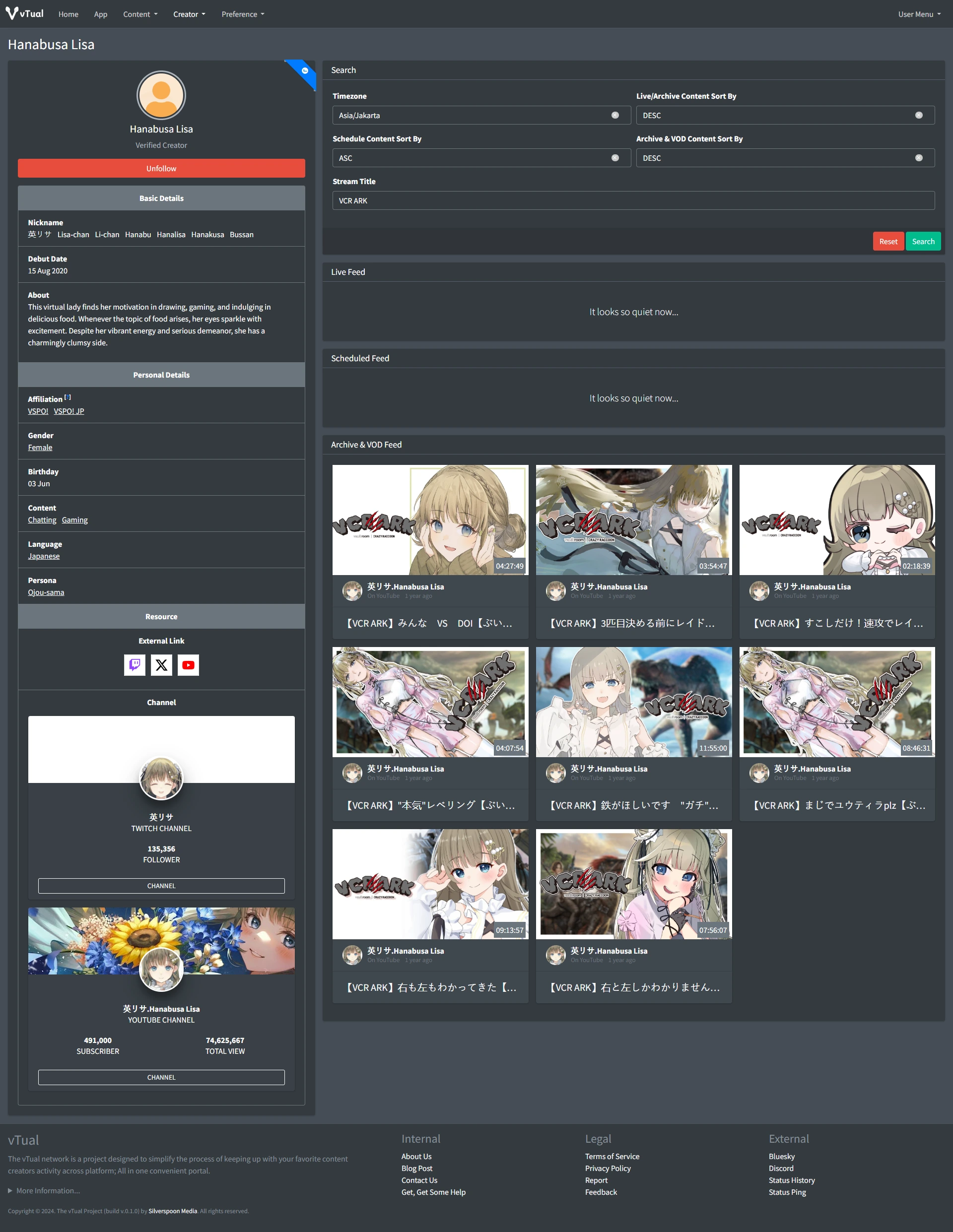 To make it easier for users to access content from related users, a search feature has been provided. This search feature applies to all types of content, including live, scheduled, archived, and VOD (Video on Demand).